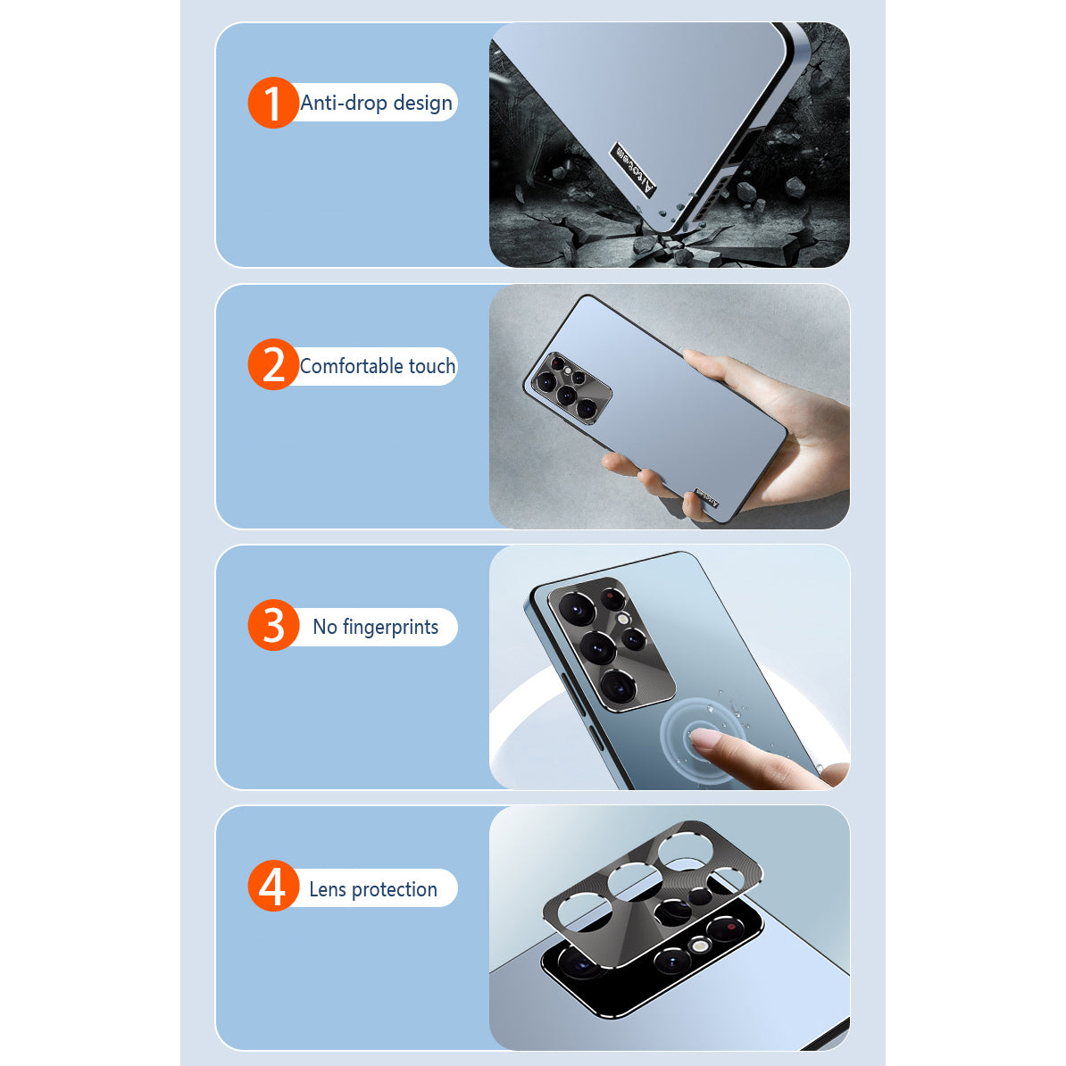 This shockproof protective case is perfectly compatible with the Samsung S22 series. Lens + frame protection, matte plating appearance, more advanced sense.