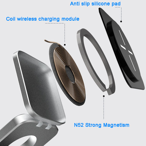 🔋【Folding Design & Strong Magnetic Absorption】The wireless charger can fold and quickly become a phone stand. The charging board is covered with a magnetic absorption device that can firmly absorb the phone.